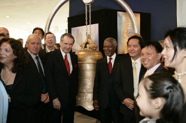 聯合國秘書長安南,於紐約總部舉辦的『聯合國成立六十週年紀念活動』之時,亦以敲響象徵促進世界和平的“世界和諧鐘”(World Harmony Bell) 為此紀念活動帶起高潮。數據源:聯合國網站 2005 年10 月25 日