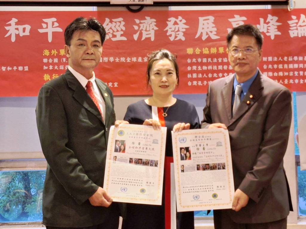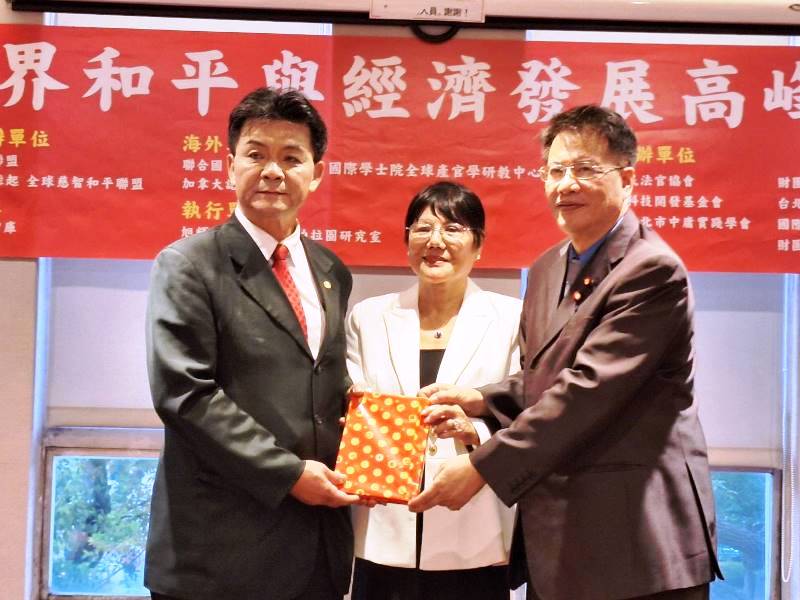 為追求世界和平與經濟發展,由「愛與和平大聯盟」與「聯合國總部緣起全球慈智和平聯盟」聯合主辦的一場《世界和平與經濟發展高峰論壇》於8月16日(週五)下午4時至9時在台北市立法院國會餐廳(康園餐廳)舉辦。海內外各界精英齊聚,論壇中邀請雷倩、丁興華、張瓊文等三位貴賓做專題演講,會後倡議「世界和平宣言」,推選12位「世界和平大使」,成立「世界和平大使團」,將共同推動國際合作,促進世界和平。