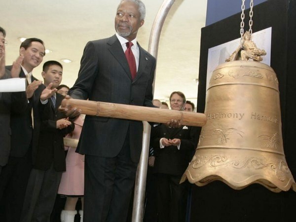 聯合國秘書長安南,於紐約總部舉辦的『聯合國成立六十週年紀念活動』之時,亦以敲響象徵促進世界和平的“世界和諧鐘”(World Harmony Bell) 為此紀念活動帶起高潮。數據源:聯合國網站 2005 年10 月25 日